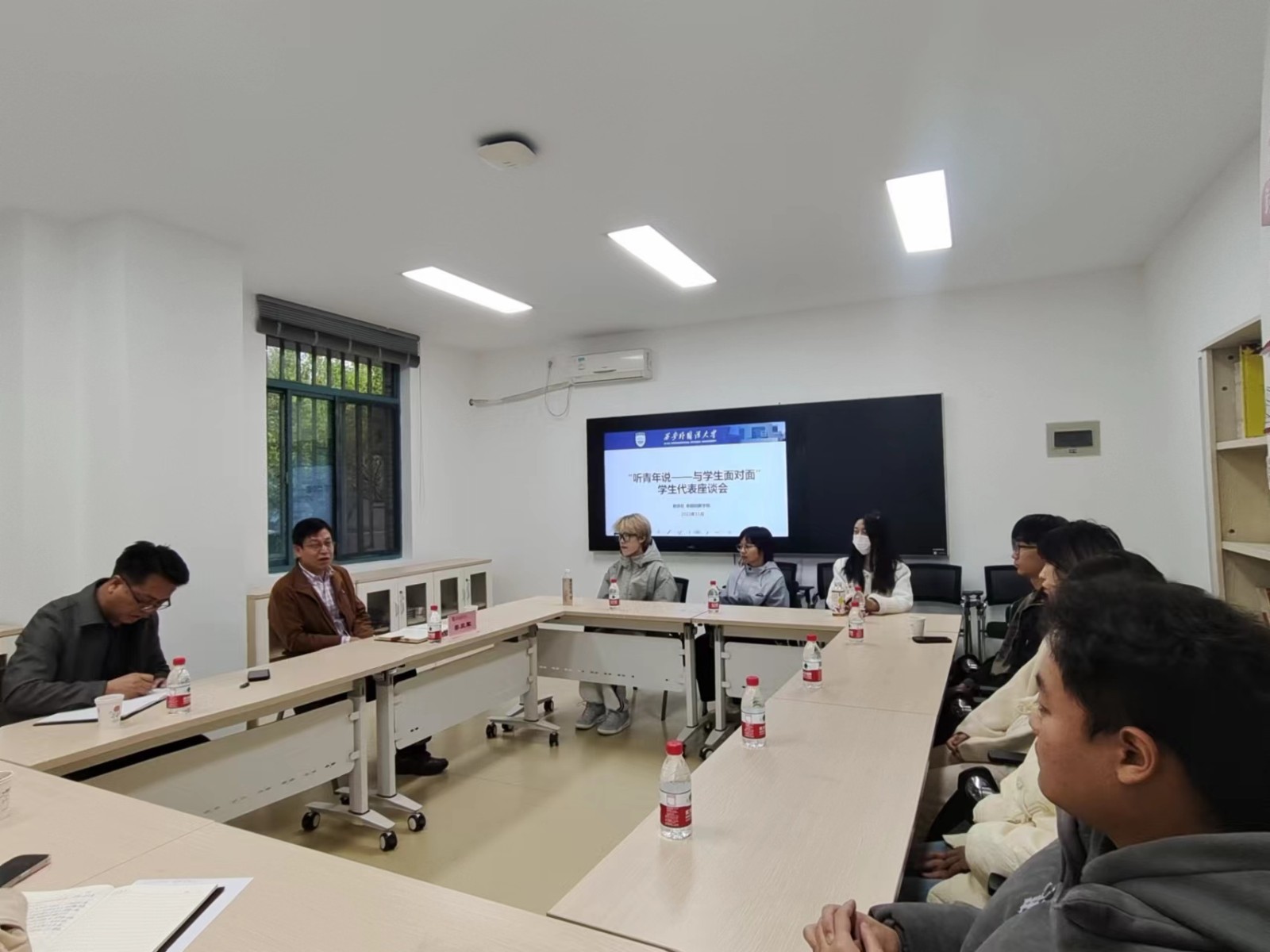 课程教学体系、未来发展方向和自我生活管理等方面依次发言,与会领导和老师认真听取了同学们提出的问题,对同学们提出的学业规划和学生学习生活中的疑惑、困惑逐一耐心解答。